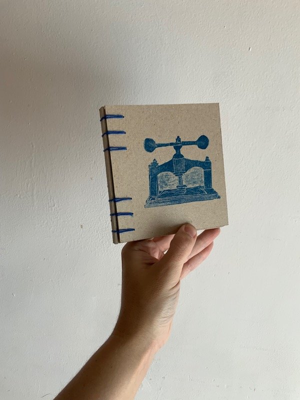 Cuaderno con tapas en crudo estampado a mano de forma artesanal con Tetrapack.